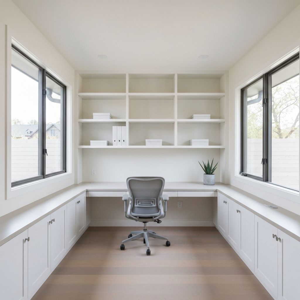 Home-Office mit Einbauregalen und perfekter Akustik.
